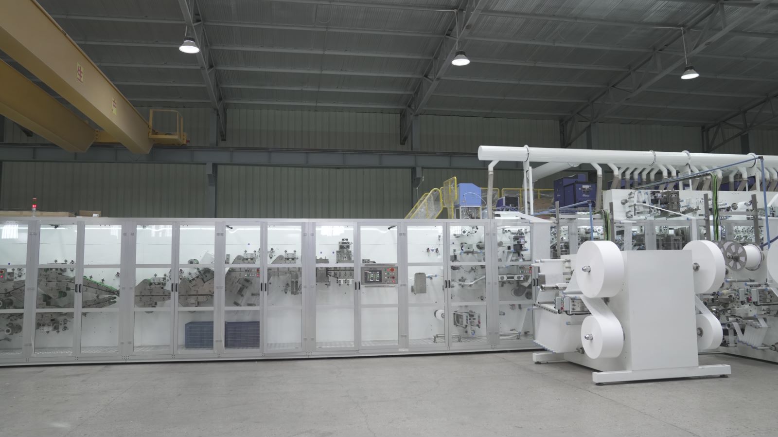 يُنتج خط الإنتاج هذا، المُدار بمحرك سيرفو، حفاضات دقيقة على شكل حرف T، بإنتاجية ثابتة تتراوح بين 400 و450 قطعة/دقيقة (السرعة التصميمية: 600 قطعة/دقيقة). يضمن هذا الخط معدل إنتاج مضمون بنسبة 98% أو أكثر، ويدعم التبديل الفوري للمقاسات بين S/M/L/XL (قابل للتخصيص). يعمل الجهاز بجهد ثلاثي الطور 380 فولت و50 هرتز (250 كيلوواط إجمالاً)، وتبلغ أبعاده 30 مترًا (طولًا) × 9 أمتار (عرضًا) × 4.5 أمتار (ارتفاعًا)، ويصل وزنه إلى 80 طنًا.